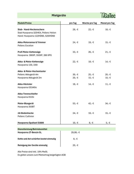 TiGaTec GmbHehemals Forst- und Gartentechnik Offenthal Verkauf, Beratung, Reparatur und Wartungvon Forst- und Gartengeräten